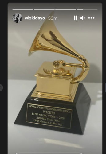 Wizkid’s plaque comes after his win at the 63rd Annual Grammy Awards, held on March 14, 2021, where he clinched the award for Best Music Video for his contribution to the global hit Brown Skin Girl.